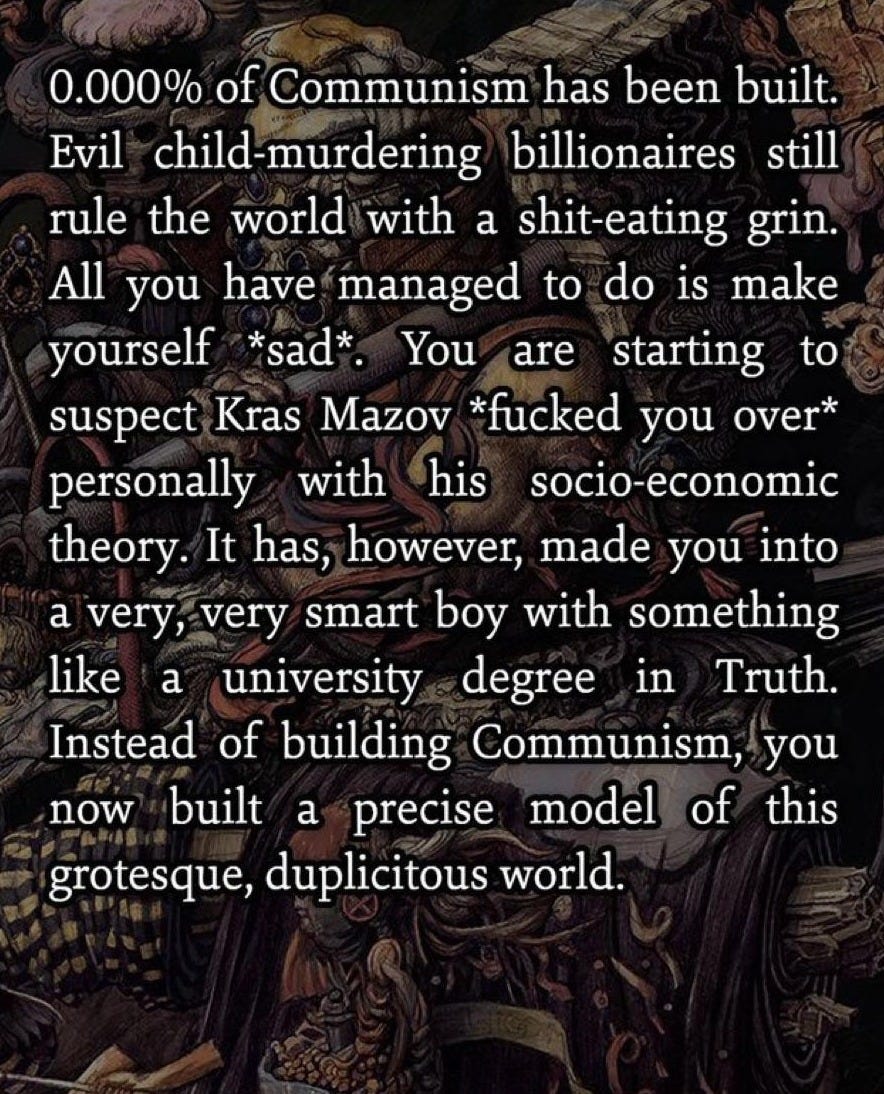 Your piece also made me think for a while on my own evolution, which is quite different from yours but, per the Intermediate Value Theorem, there must have been a moment when our views met at f(c) = L. I started in my teens as a really dogmatic Marxist-Leninist, and this continued to be my gig until at least my very late 20s-early 30s. One book that really forced me to update my beliefs was Alec Nove's The Economics of Feasible Socialism, although my change was more of a little trickle-down effect for many years. I also remember a book that really surprised me in my early 20s and that was actually giving me intellectual tools for rejecting the Marxist vision of class, and that landed in my hands by a misunderstanding: Frank Parkin's Marxism and Class Theory: A Bourgeois Critique.